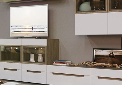 - Фасады выполнены из МДФ, цвет бежево-серый;